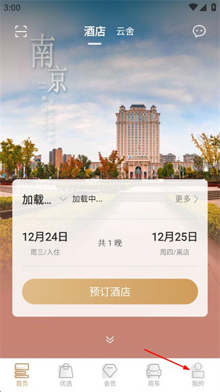 1、打开盛行天下酒店APP,在主界面找到底部导航栏的我的选项,点击进入登录页面。