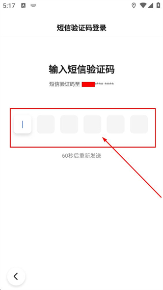 4、在短信验证码登录页面,输入收到的验证码,完成注册登录。