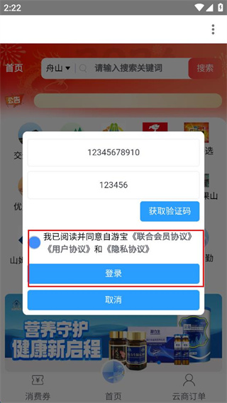 2、进入应用后,触发登录弹窗,在手机号码输入框填写个人常用的手机号信息。