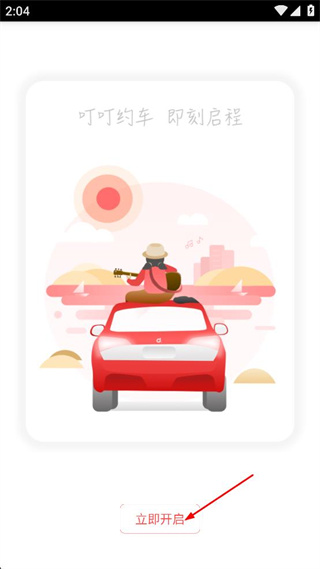 1、打开叮叮约车APP,在启动界面找到立即开启按钮,点击该按钮进入应用主界面。