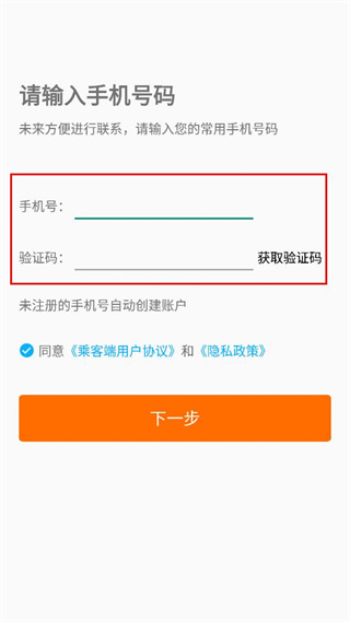 2、进入请输入手机号码页面,在手机号输入框填写个人常用的手机号码信息。