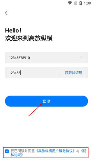4、勾选已阅读并同意相关协议的选项,将验证码填入后点击登录按钮完成账号登录。
