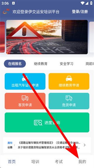 1、打开伊交运安,点击底部我的,进入登录界面。