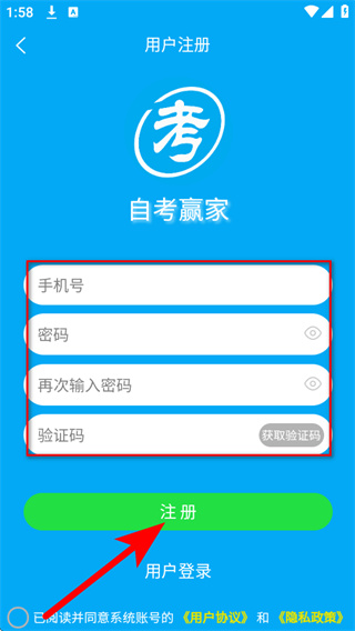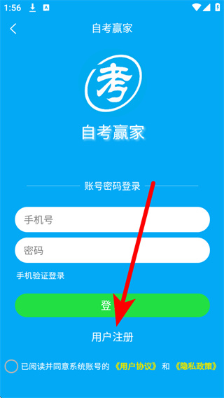 3、在登录界面中点击用户注册,进入用户注册页面。