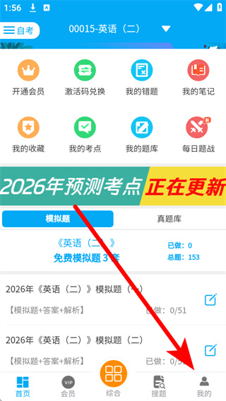 1、打开自考赢家,点击底部导航栏的我的,进入个人中心页面。
