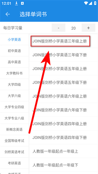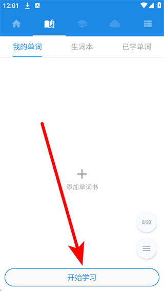 2、在学习界面,点击最下面的开始学习,选择单词书。