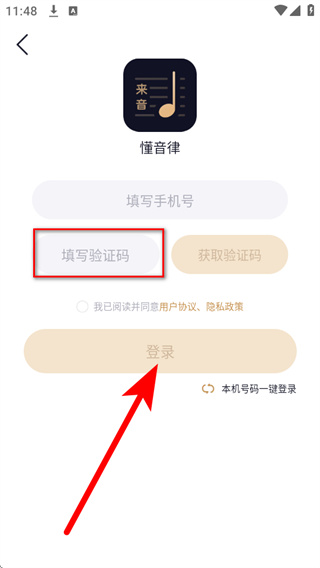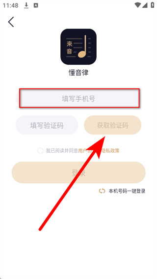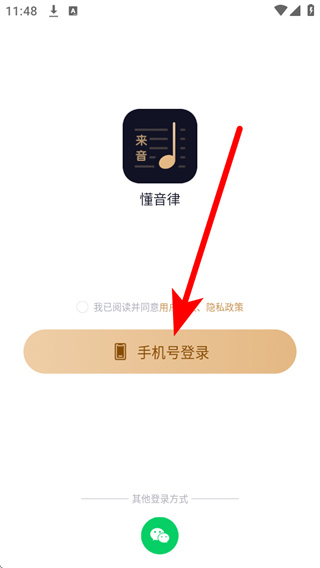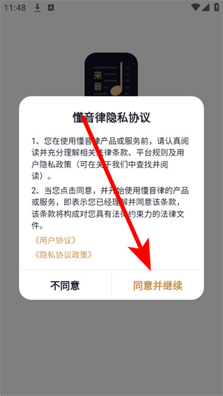 1、打开懂音律,在弹窗中点击同意并继续,进入登录选择页面。