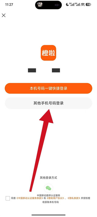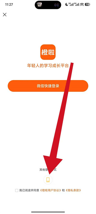 1、打开橙啦,在初始登录界面点击其他登录方式,展开更多登录选项。