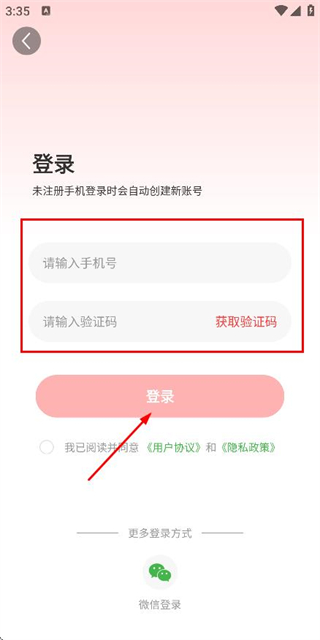 3、在登录页面填写手机号和验证码,勾选协议后,点击登录完成账号登录操作。