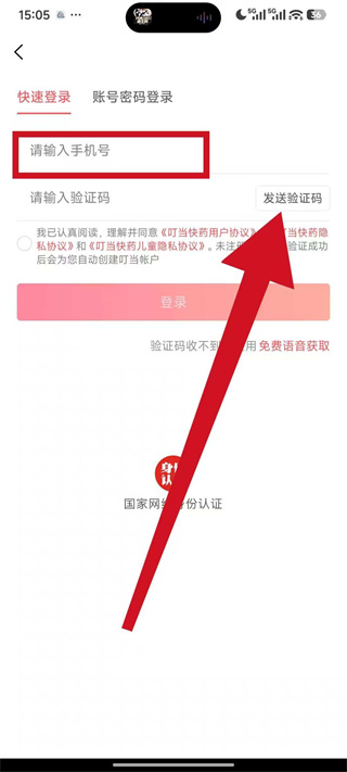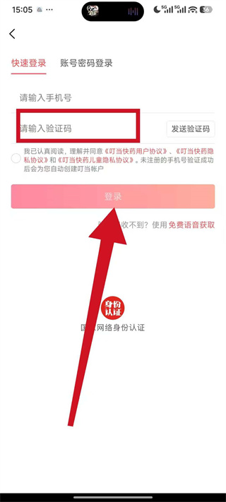 4、将收到的短信验证码填入验证码框,勾选相关协议后,点击登录完成账号登录。