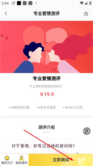 3、在测试详情页,点击立即测试,按照提示完成题目作答即可。