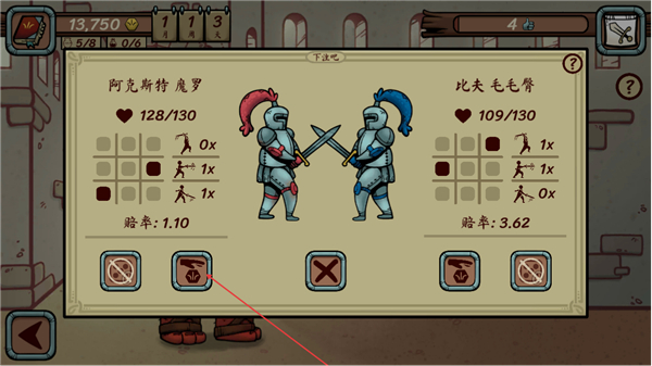 2、查看双方属性血量、技能、赔率,选择支持的角色。