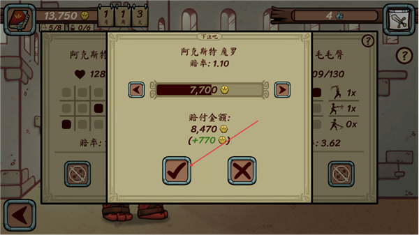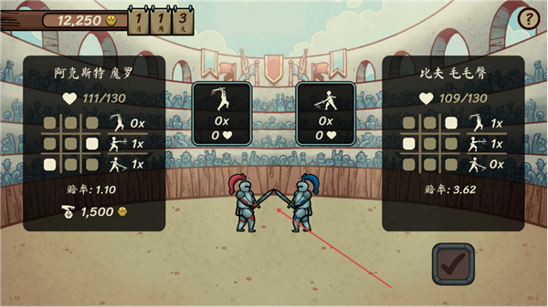 4、观看角斗对战,根据结果获取对应的奖金如1500,积累货币资源。