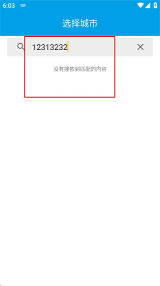 4、在搜索框中输入数字12313232,等待系统检索,查看是否有匹配的城市内容。