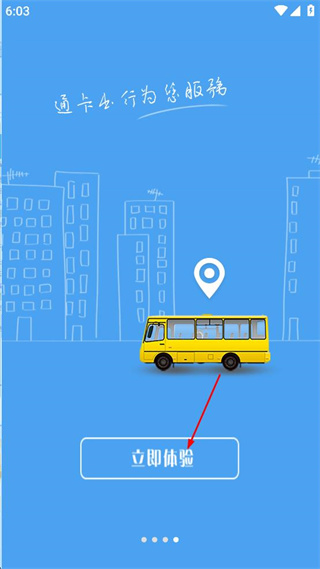 2、进入通卡出行为您服务的引导页面,查看页面展示内容后,点击立即体验按钮。