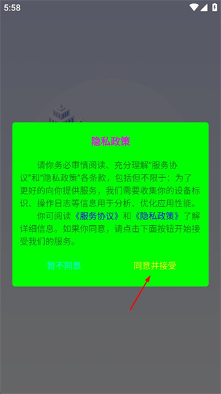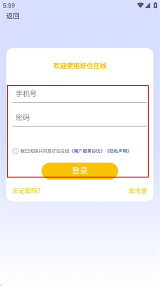 1、打开好位在线App,阅读隐私政策及服务协议内容,点击同意并接受按钮进入应用。