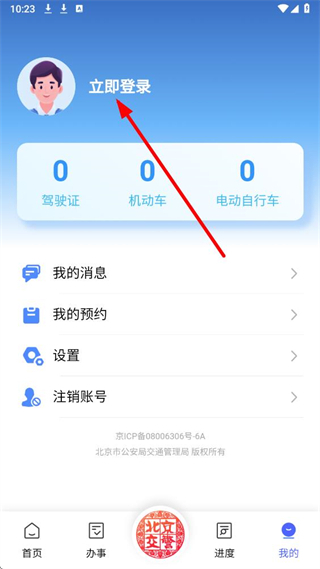 1、进入北京交警app,点击首页底部我的选项,进入我的页面。