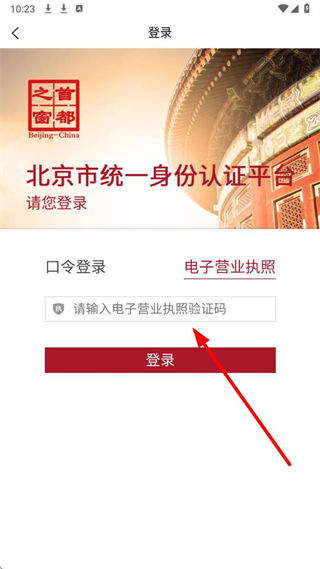 4、在法人登录页面,选择电子营业执照方式,输入对应的验证码后点击登录,即可完成法人账号登录。