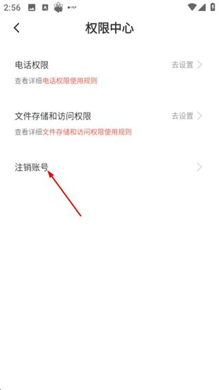 4、在权限中心页面,点击注销账号选项,可完成账号注销操作。