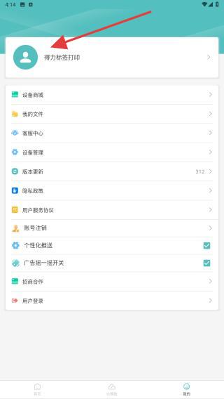 2、进入到我的个人页面内,点击得力标签打印的区域。