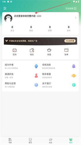 2、在个人主页内,点击上方登录体验完整内容。