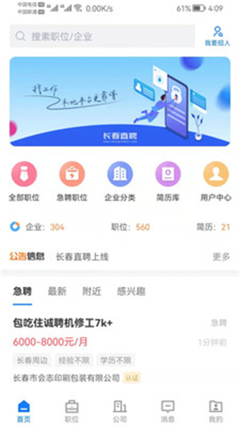 长春直聘app这是一款非常棒的招聘app,可以很好的满足用户的求职需求,在这款长春直聘APP中,汇集了海量的岗位信息,长春直聘APP可以帮助用户寻找到更多的职位,任何你想要的工作都可以在这里找到,可以符合你的求职需求,找到合适的工作~