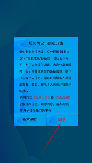 1、阅读服务协议和隐私政策后,点击同意,进入企业一号登录页面。