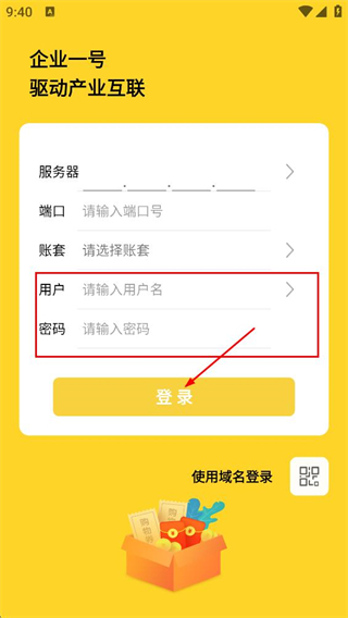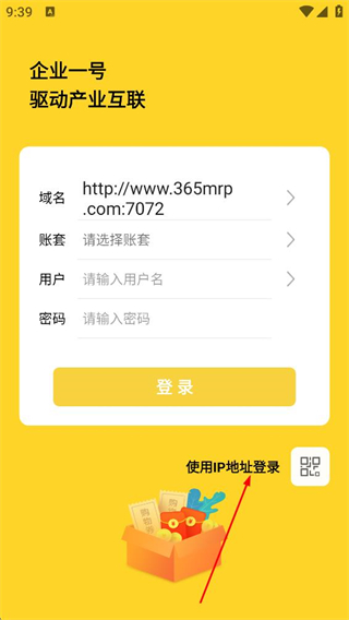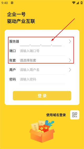 3、在IP登录表单页面,填写服务器、端口号、账套对应的内容。