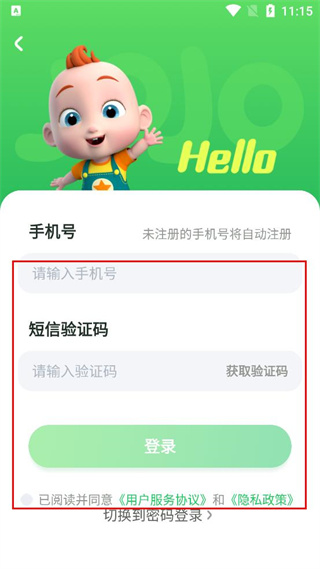 4、进入登录界面后,在对应输入框准备填写手机号及短信验证码,以便完成账号登录。