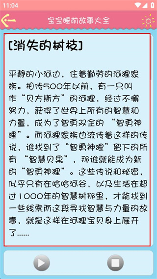 4、进入故事详情页面后,即可查看消失的树枝故事的具体内容,准备播放或阅读。