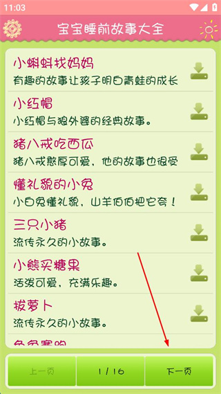 2、进入主界面后,找到页面底部的下一页按钮,点击该按钮切换到故事列表的下一页。