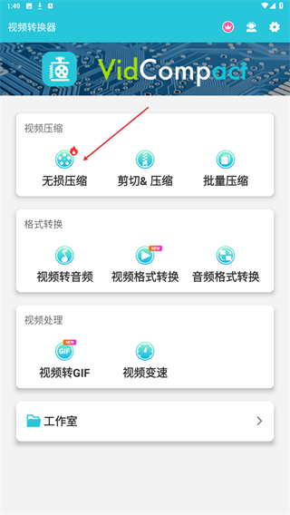 1、打开视频转换器App,进入时点击无损压缩的按钮。