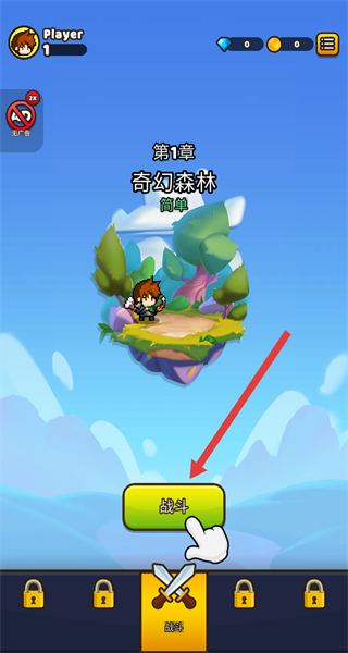 1、点击战斗按钮,进入第1章“奇幻森林”关卡,开启冒险闯关进程。