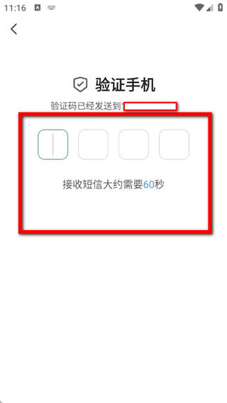 4、在验证手机页面,在输入框输入验证码,完成账号的登录注册。