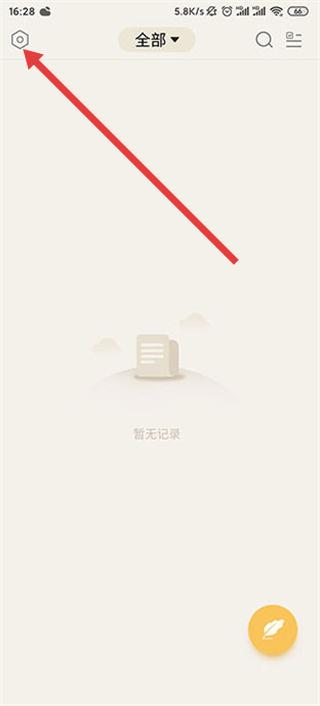 1、打开备忘录记事本app,点击右上角的设置图标。