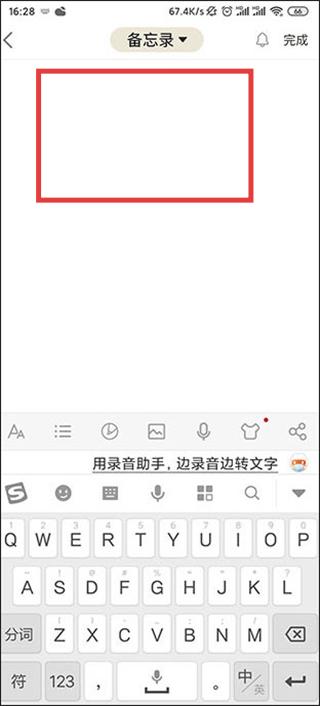 3、在编辑页面中,输入内容,点击完成,即可保存。