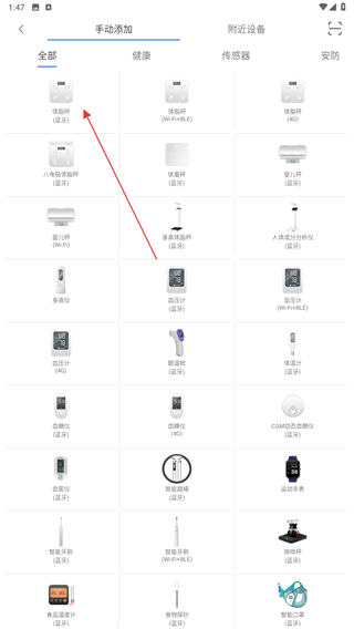 3、在手动添加设备的页面内,选择并点击进行添加。