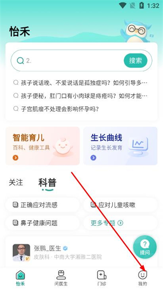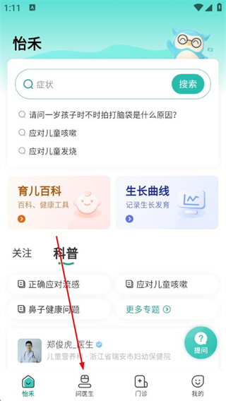 1、打开怡禾健康APP,点击导航栏中的问医生。