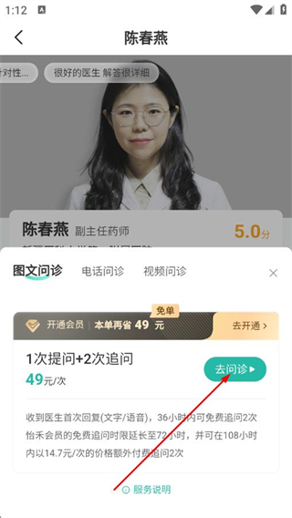 4、在弹出的问诊方式选择中,点击去问诊即可发起问诊。