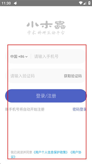 3、填写信息并勾选协议后,点击登录注册按钮,若是新用户即可注册成功。