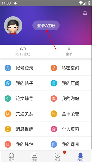 1、进入小木虫论坛后,点击底部的我的选项,可进入个人中心页面。