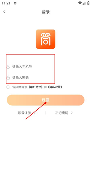 3、在登录页面填写手机号和密码,勾选协议后,点击登录完成账号登录操作。
