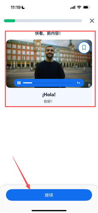 3、在课程学习页面,观看完内容后点击继续按钮,可进入课程练习环节。