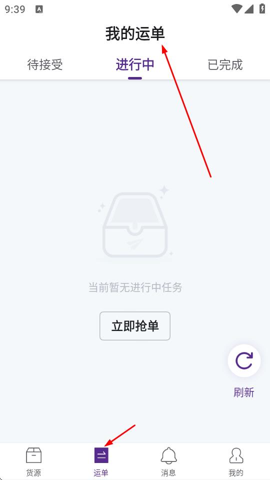 2、在运单板块,司机能查看不同状态的运单,包括待接受、进行中、已完成的运单,方便跟踪运单进展,管理运输任务。