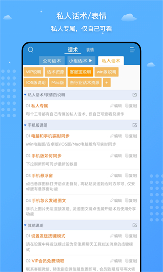电脑版与手机版实时同步话术数据,手机端支持悬浮窗一键发送,电脑端自动吸附聊天窗口,满足客服办公、出差等多场景使用需求。