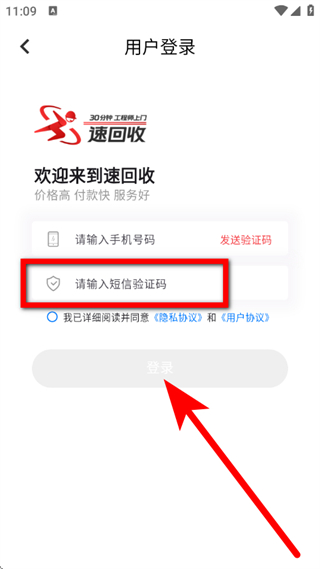 4、输入短信验证码,勾选后,点击登录,完成登录。