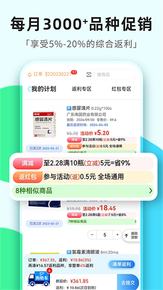 涵盖万余种SKU包括处方药非处方药中成药西药保健品医疗器械等,适配日常用药慢病续方家庭备药应急用药等场景,一键配齐所需药品构建个人与家庭移动药箱。