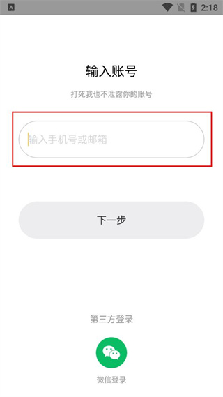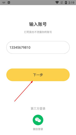 2、进入应用后,在输入账号页面的对应输入框,填写个人的手机号码作为登录账号。