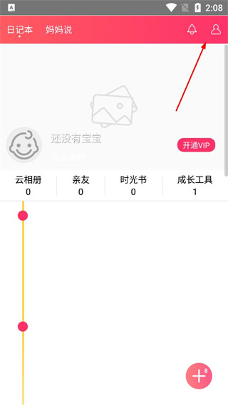 1、打开育儿日记本类APP,在主界面找到右上角的个人相关按钮,点击进入登录页面。
