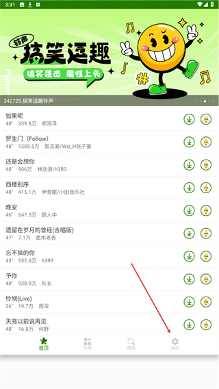 1、进入免费手机铃声大全app以后用户就可以开始下载自己需要的手机铃声了